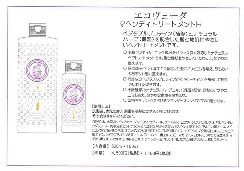 ヘアトリートメントです。髪と地肌をやさしくいだわり、しなやかに